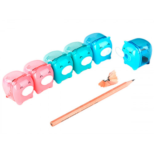 Точилка одинарная с контейнером Поросенок, с забавным дизайном. Ее можно использовать и как игрушку, а яркая расцветка понравится любому ребёнку. Для чернографитных и цветных карандашей диаметром до 8,2 мм с углом заточки 30° для широких и мягких линий. Закрытая конструкция предотвращает высыпание мусора во время заточки. Размер: 48×38×40 мм.