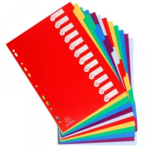 Разделитель на 12 делений А4 "4912E" Exacompta полипропилен., с маркир., ассорти, 4912E