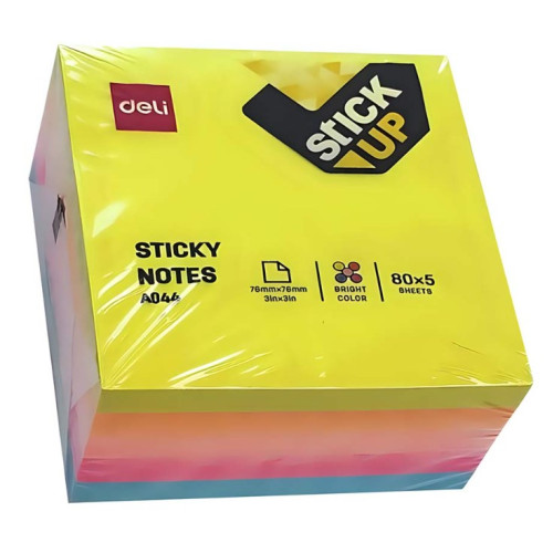 - Модель: Самоклеящийся блок 76*76мм 400л ассорти (5 цветов неон) Deli, A0