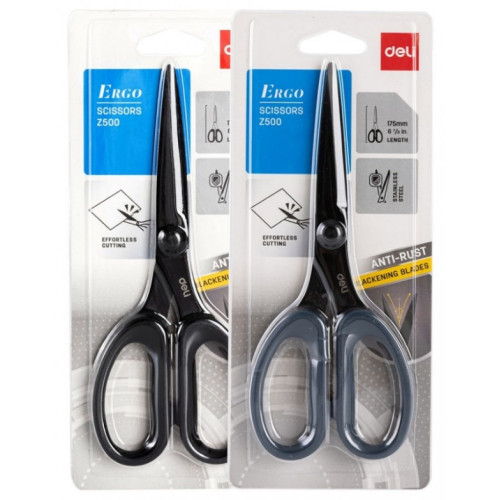 Ножницы Deli ERGO универсальные 175 мм, с пластиковыми ручками и лезвием из нержавеющей стали, предназначены для резки бумаги и картона.